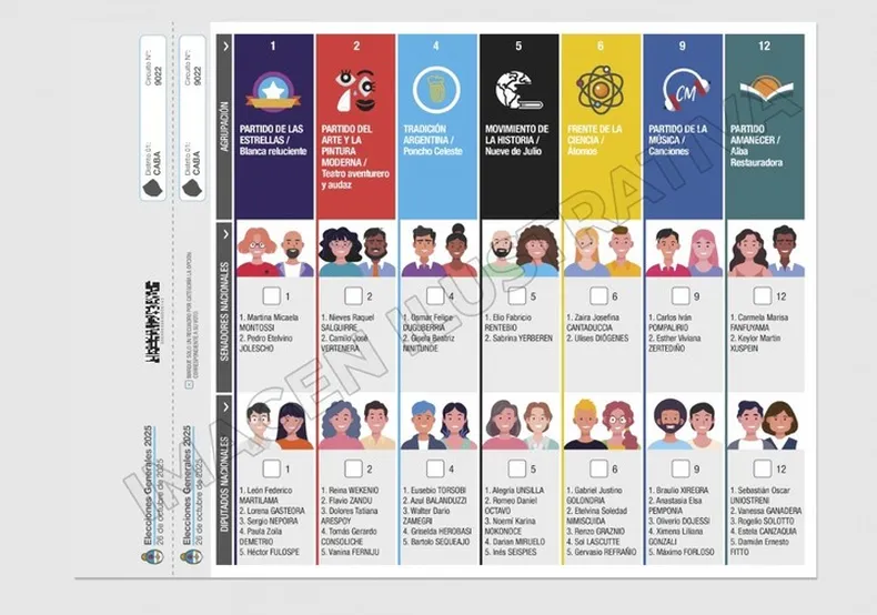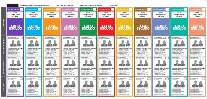 El orden de aparición de frentes y partidos políticos en las boletas locales se establecerá conforme al sorteo nacional. Los frentes provinciales y departamentales se ubicarán a la derecha de la boleta.