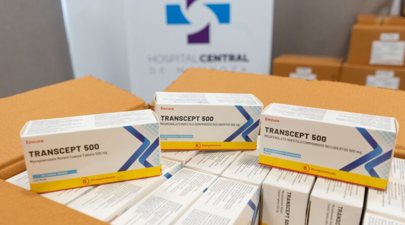 Medicamentos. En el marco de una política sostenida de eficiencia en salud pública, la Provincia recibió 199.700 unidades de micofenolato de mofetilo, fármaco destinado a pacientes trasplantados. Con esta compra, Mendoza ahorra cerca de 200 millones de pesos y asegura la provisión de medicamentos esenciales por más de un año y medio.